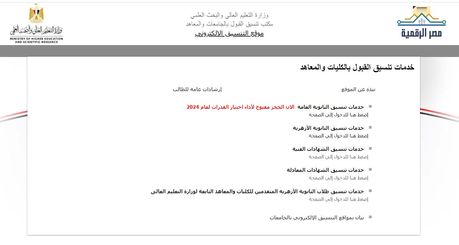 حيث يقوم طلاب الثانوية العامة للعام الدراسي 2023-2024 بالدخول عبر موقع التنسيق الإلكتروني، اليوم، حتى السابعة مساء، إيذانا بانتهاء المرحلة الأولى، لبدء انطلاق المرحلة الثانية.