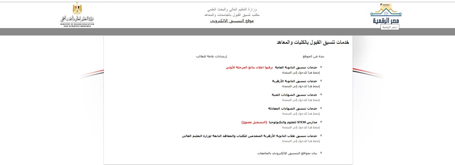 موقع التنسيق: ترقبوا إعلان نتيجة المرحلة الأولى 2024 لطلاب الثانوية العامة