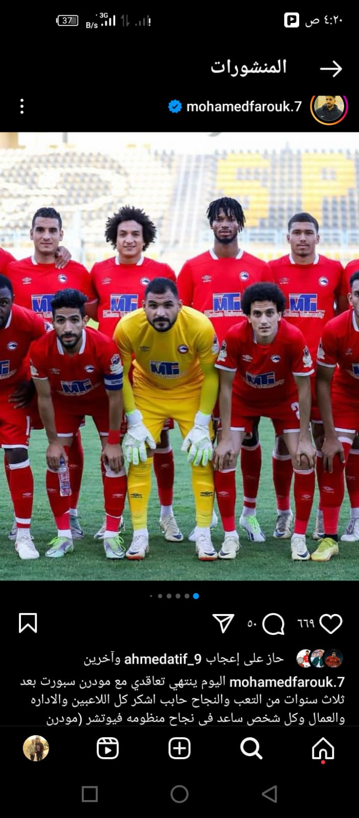 وكتب فاروق على صفحته الشخصية عبر موقع التواصل الاجتماعي إنستجرام: اليوم ينتهي تعاقدي مع مودرن سبورت بعد ثلاث سنوات من التعب والنجاح حابب أشكر كل اللاعبين والإدارة والعمال وكل شخص ساعد في نجاح منظومه فيوتشر مودرن سبورت، بتمني التوفيق للنادي واللاعبين في مشوارهم القادم.. وإن شاء الله خطوه جديده ليا الفترة القادمه في مشواري الكروي وتحدي جدید الحمد لله.