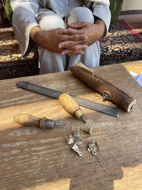 وأضاف مصطفى: استخدم أدوات بسيطة جدا وهو المبرد للتنعيم حتى يسهل الحفر على الختم، وقلم صلب للكتابة، حيث أقوم بكتابة الاسم ثلاثي بالمقلوب ويتطلب الأمر دقة ومهارة، وقطعة خشبية لإمساك الختم أثناء الكتابة بالحفر عليه وتنعيمه تسمى ملزمة.