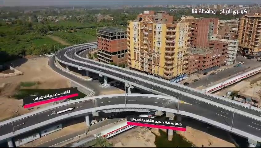 ومن أبرز مشروعات النقل، كوبري أعلى مزلقان الرياح بمحافظة قنا، والذي يساهم في تحسين شبكة الطرق بالمنطقة، حيث يربط بين جانبي السكة الحديد، ما يخفف الازدحام المروري بشكل كبير ويسهل حركة المرور.