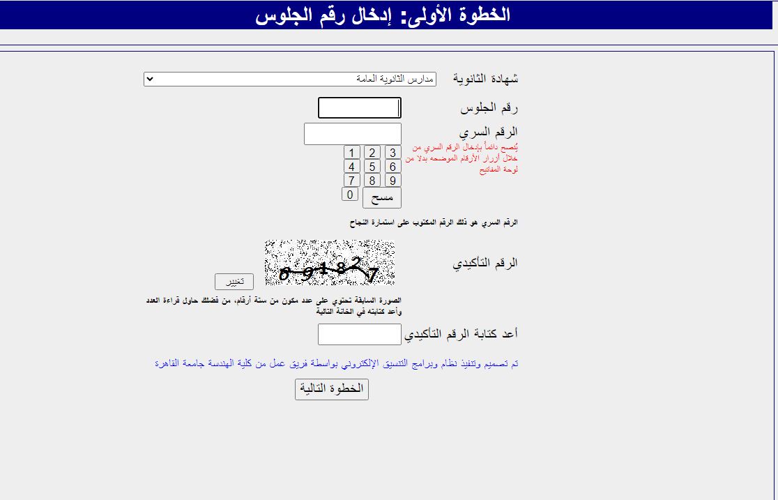 - تظهر صفحة تسجيل البيانات الخاصة سواء رقم الجلوس أو الرقم السري أو الرقم التأكيدي.