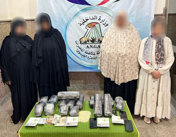 وعقب تقنين الإجراءات تم ضبط 4 من عناصر التشكيل "سيدات" خلال إنهاء إجراءات سفرهن على متن إحدى الرحلات الجوية بميناء القاهرة الجوي، وبحوزتهن (19 كيلو جرام لعقار الكبتاجون المخدر) مخبأة في جيب سرى داخل الكراسي المتحركة الخاصة بهن وكذا طيات ملابسهن، كما تم ضبط باقي عناصر التشكيل، وبحوزتهم (100 ألف قرص لعقار الكبتاجون المخدر - كمية من الأقراص المؤثرة ).
