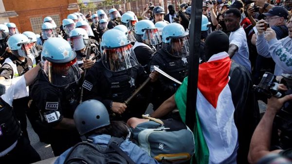 متظاهرون داعمون لغزة يقتحمون السياج الحديدي للمؤتمر الوطني للحزب الديمقراطي بولاية شيكاغو.. والشرطة الأمريكية تتصدى لهم