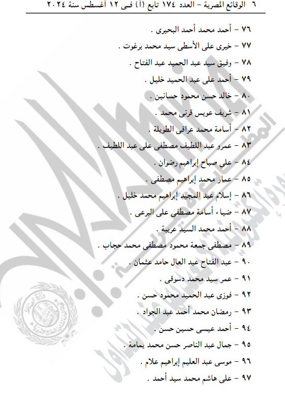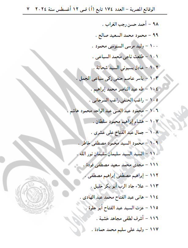 نشرت الجريدة الرسمية، قرار محكمة جنايات القاهرة، قرارات إدراج 117 متهما على قائمة الإرهاب.