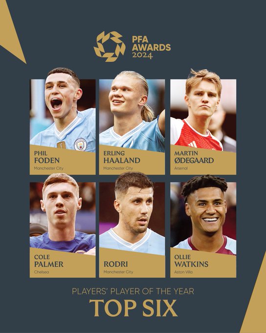 وتنافس على جائزة لاعب الموسم في الدوري الإنجليزي، والمقدمة من رابطة لاعبي كرة القدم المحترفين، كل من أوديجارد لاعب فريق أرسنال، وإيرلينج هالاند ورودري وفودين ثلاثي مانشستر سيتي، وكول بالمر لاعب تشيلسي، وأولي واتكينز لاعب أستون فيلا.