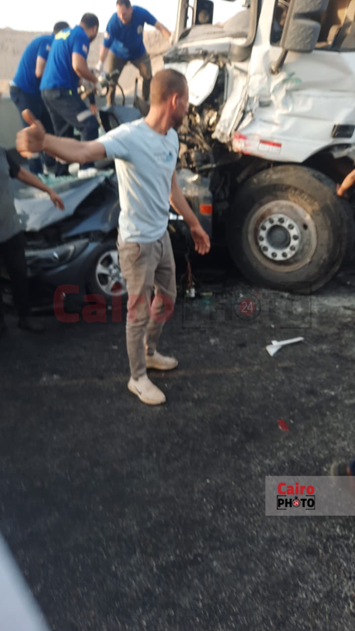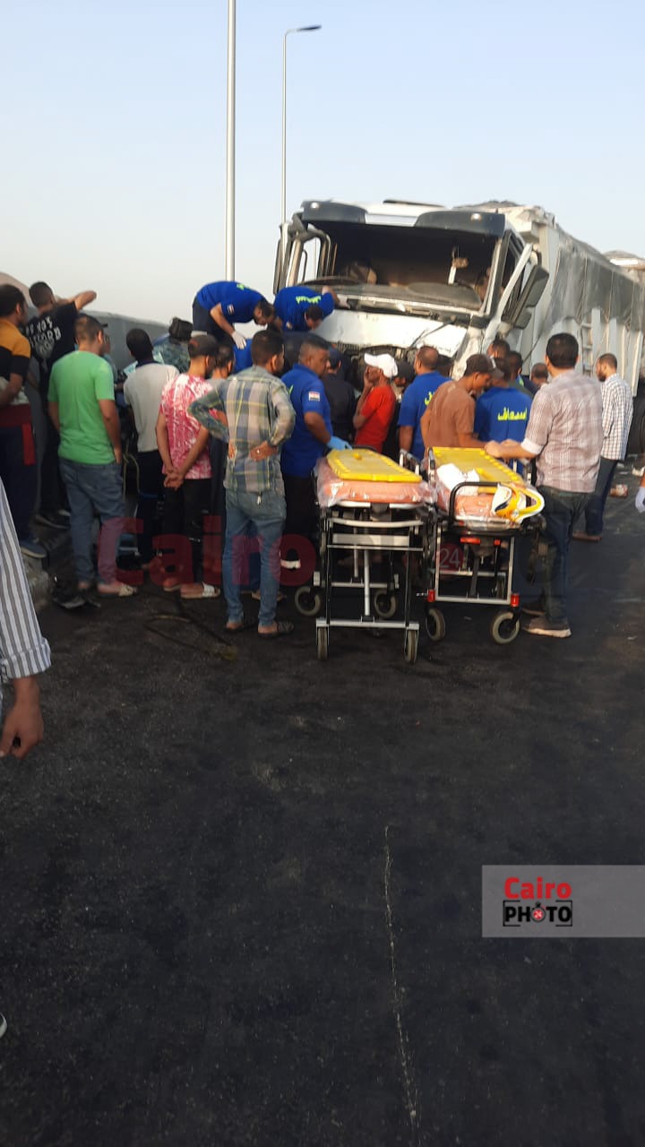 وأكد مصدر بوزارة الصحة والسكان لـ القاهرة 24، أنه تبين بالمعاينة لموقع الحادث تصادم نحو 25 سيارة نقل وملاكي ما أسفر عن وقوع 26 مصابا، حيث تم نقل 13 مصابا للمستشفى لتلقي الرعاية الصحية، فيما رفض 13 آخرين النقل وتعرضهم لإصابات غير حرجة ما بين سحجات وكدمات.