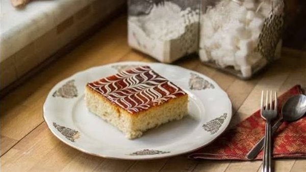 - يتم عمل ثقب في الكيك بواسطة خلة الأسنان ثم يوضع الحليب على الكيك