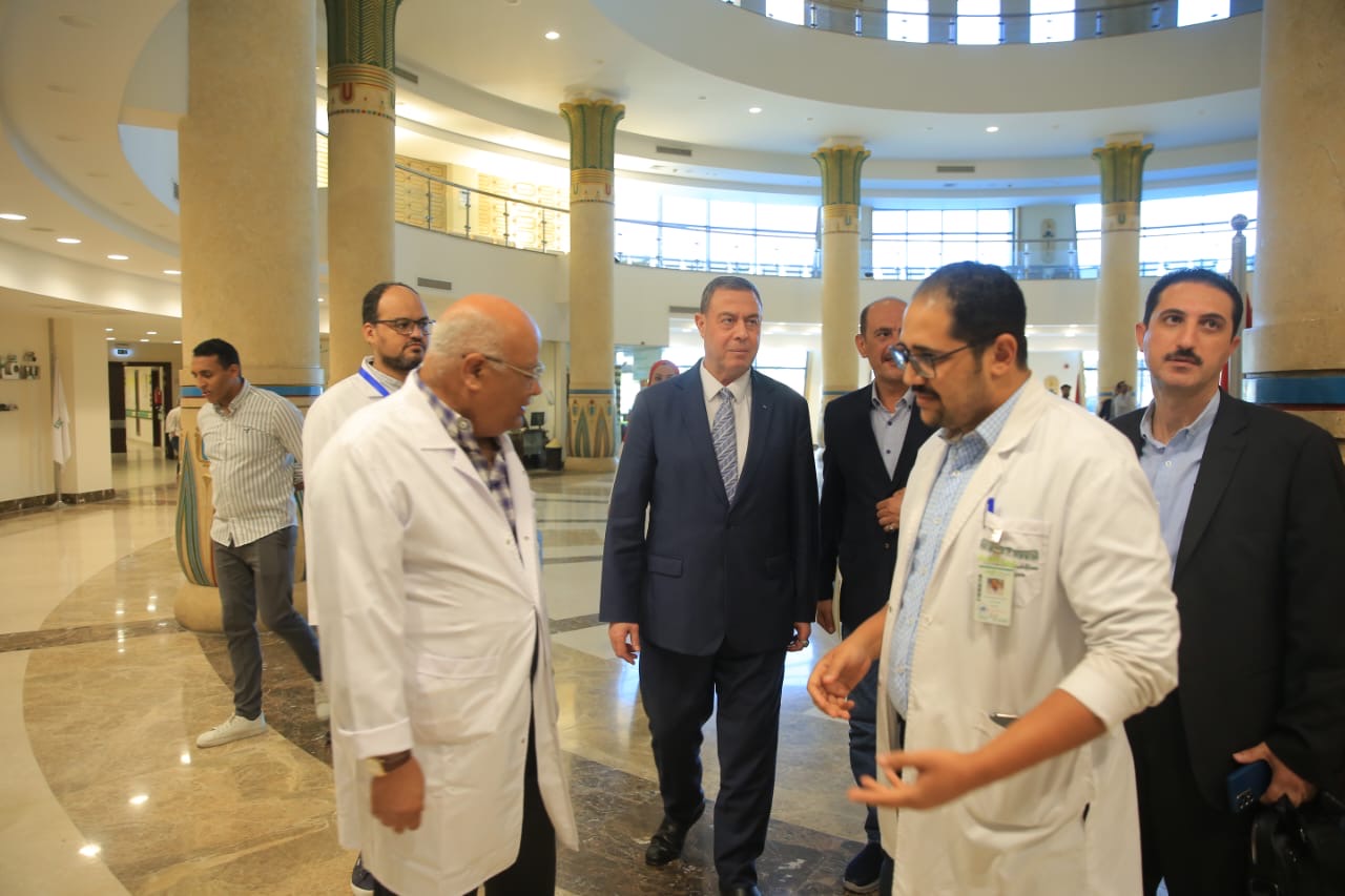 وخلال جولته على أقسام المستشفى المختلفة والتي استمرت لأكثر من ساعتين بدءًا من قسم الاستقبال وغرف علاج اليوم الواحد والعلاج الكيماوي والعلاج الإشعاعي وغرف الأشعة وبنك الدم المتكامل ومعمل الباثولوجي، عبر السفير الفلسطيني، عن سعادته الكبيرة بزيارة المستشفى لما لمسه من مستوى طبي متقدم وتجهيزات عالمية، مؤكدًا أن المستشفى يضاهى المستشفيات العالمية.