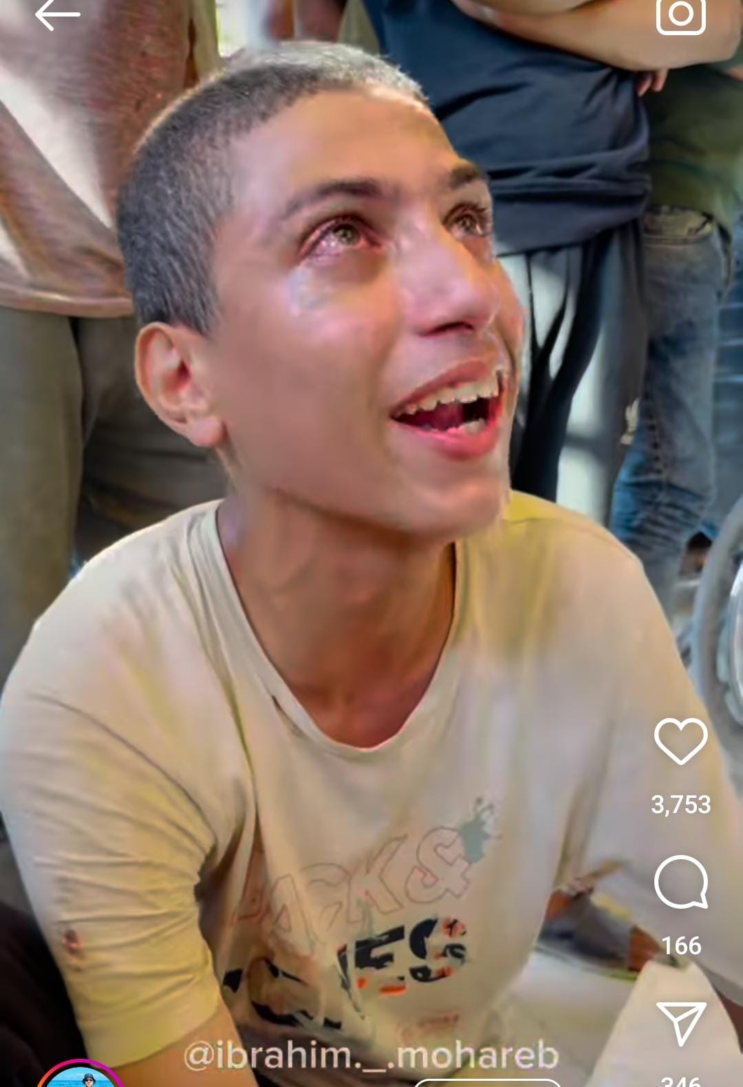 تداول مستخدمو مواقع التواصل الاجتماعي فيديو لشاب فلسطيني في حالة بكاء متواصل بعد استشهاد أحد أقاربه نتيجة الغارات المتواصلة للاحتلال الإسرائيلي، وظهر الشاب وهو يكرر جملة هذا شفيعي في الجنة.