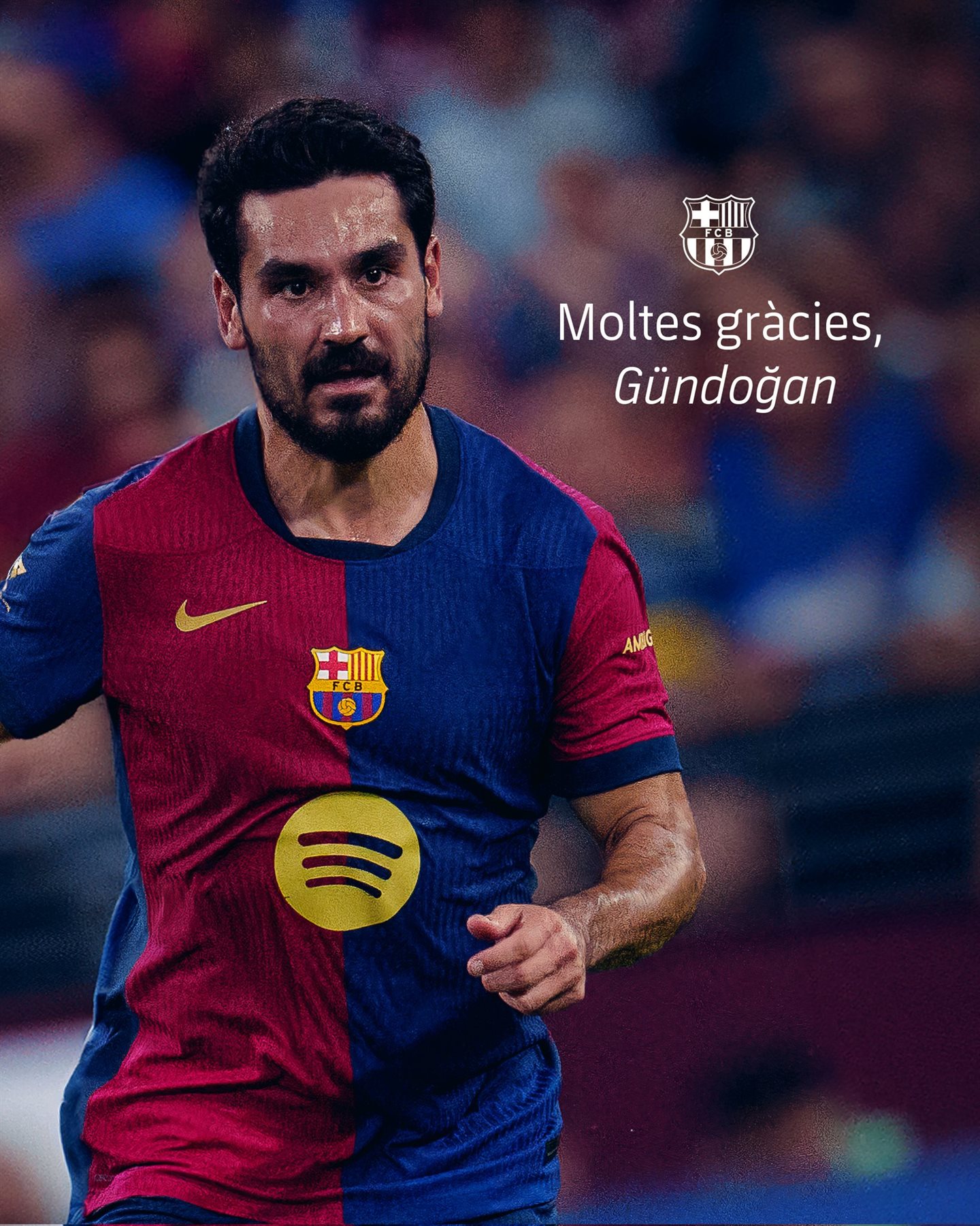 وأضاف: يتقدم برشلونة لجوندوجان بجزيل الشكر والتقدير على تفانيه وإخلاصه، متمنيا له كل التوفيق والنجاح في بقية مشواره.