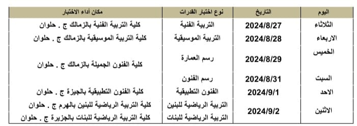وأردفت وزارة التعليم العالي والبحث العلمي، أنه يتم الحصول على موعد الامتحان من الموقع إلا بعد إتمام عملية السداد بالوسائل المُحددة على موقع اختبارات القدرات التابع للتنسيق الإلكتروني على أن يتم إجراء هذه الاختبارات في الأماكن والمواعيد المحددة، كما هو موضح بالجدول.