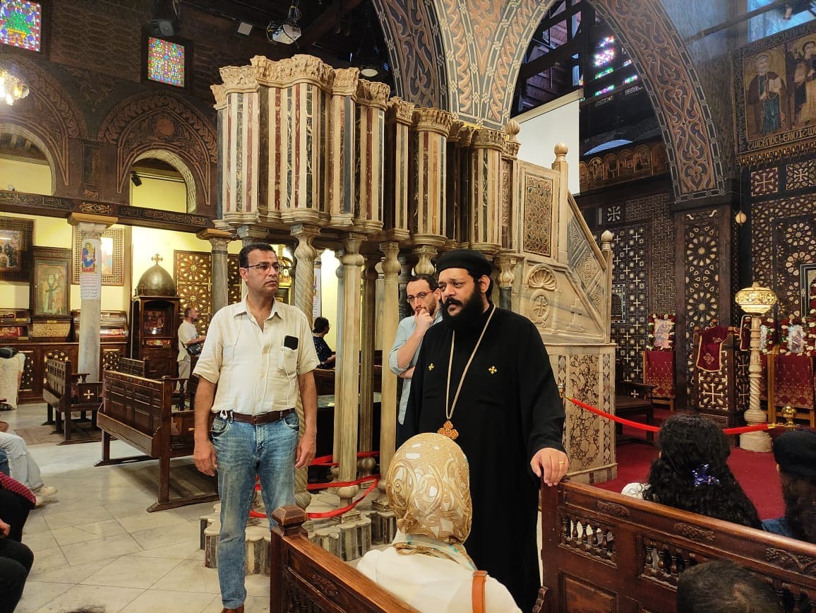 وأوضح الفنان محمد كمال، أن الجولة بدأت بحوار ثقافي من خلال دكتور مينا سامي، المرشد المعرفي للكنيسة، حول القواسم الثقافية المشتركة للمسلمين والمسيحيين، تحت مظلة مصرية واحدة، وتطرق الحوار إلى محتويات الكنيسة من الإيقونات ال 110 التاريخية، والهياكل الثلاثة للسيدة مريم، ومار جرجس، ويوحنا المعمدان، وذهب الحوار للأطباق النجمية الموجودة فى الكنيسة ترميزًا للسيد المسيح، وتلاميذه، وكذلك الموجودة فى المساجد، وأيضًا الأعمدة ذات الطراز البازليكي، ومثيلتها في المساجد، وفي المعابد المصرية القديمة، ومصدر الجميع من النخلة داخل الطبيعة المصرية الساحرة، ثم اختتم الحوار حول العلاقة بين التراتيل المسيحية، والتواشيح الإسلامية، ومصدرهما المصري القديم من النشيد السنجاري، كحوار غني بكل التوجهات القومية المصرية المعتمدة على الأصل الديني الواحد لعبادة الإله الواحد.