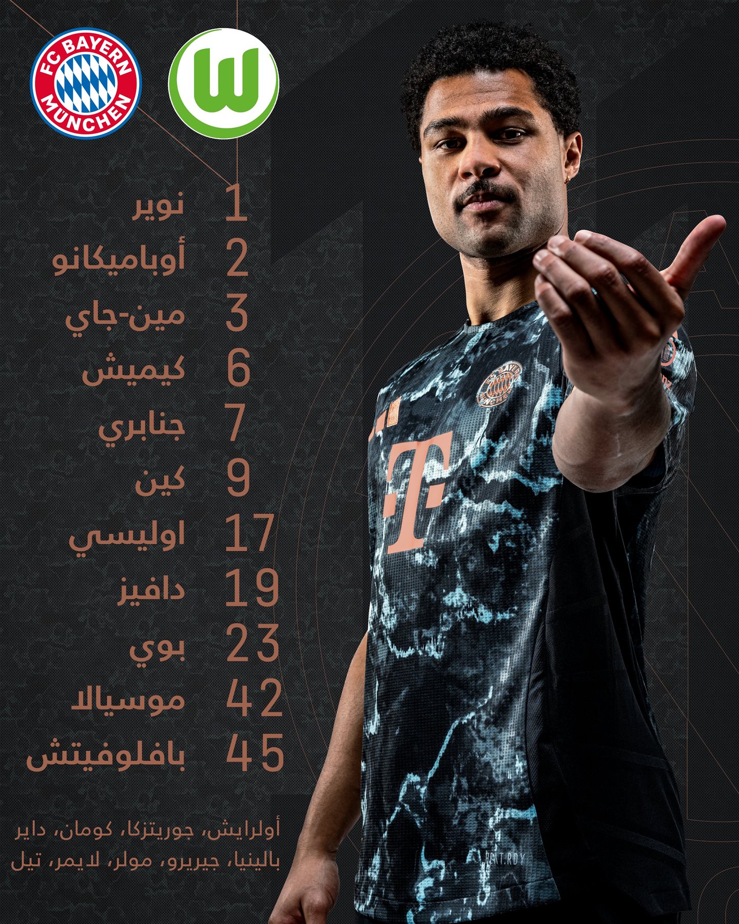 تشكيل بايرن ميونخ الرسمي لمواجهة فولفسبورج في الدوري الألماني
