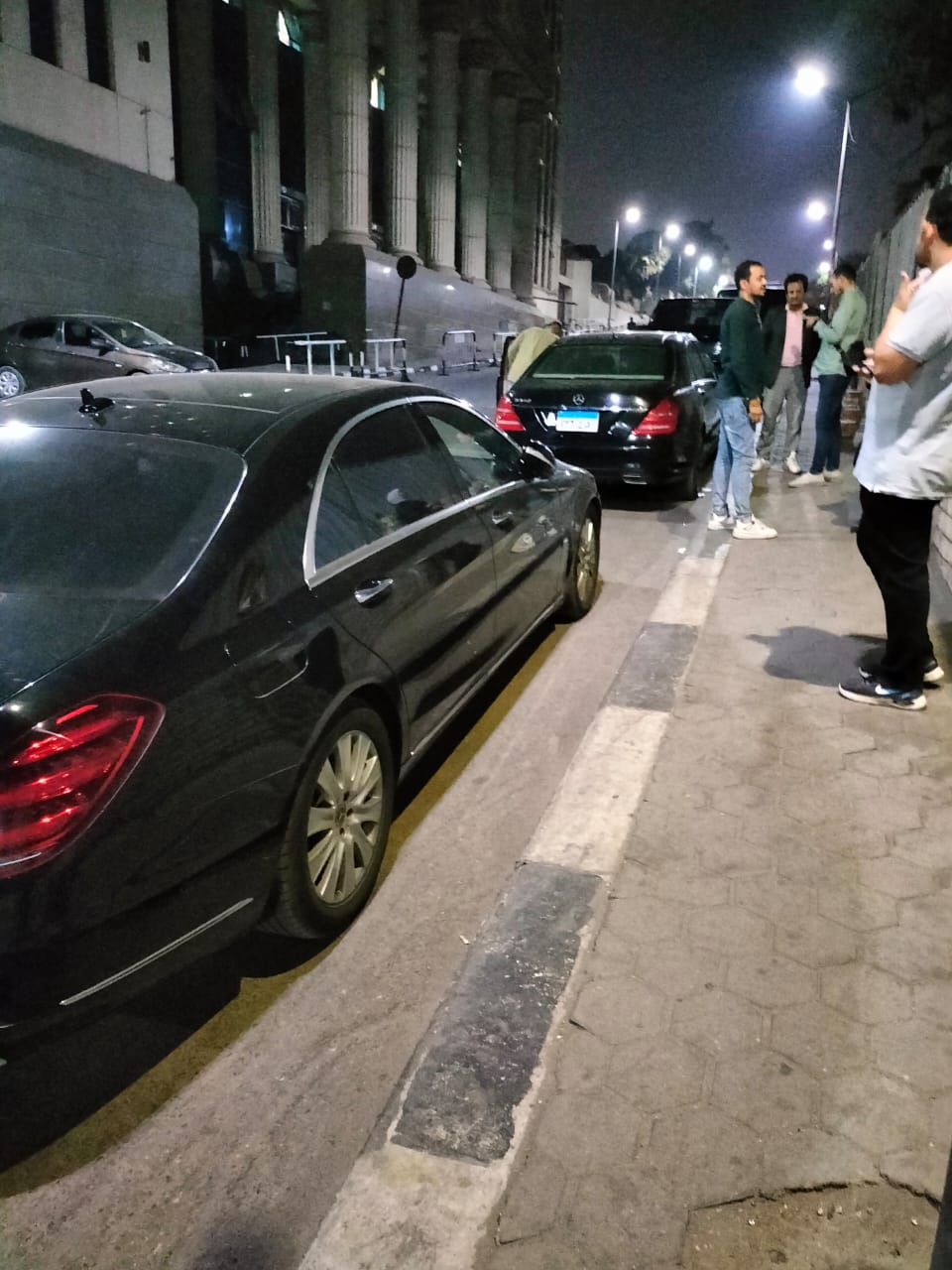 والتقطت عدسة القاهرة 24 صورًا لعدد من سيارات الدودج والمرسيدس، في انتظار خروج الفنان محمد فؤاد من سرايا النيابة في حال قررت جهات التحقيق إخلاء سبيله.