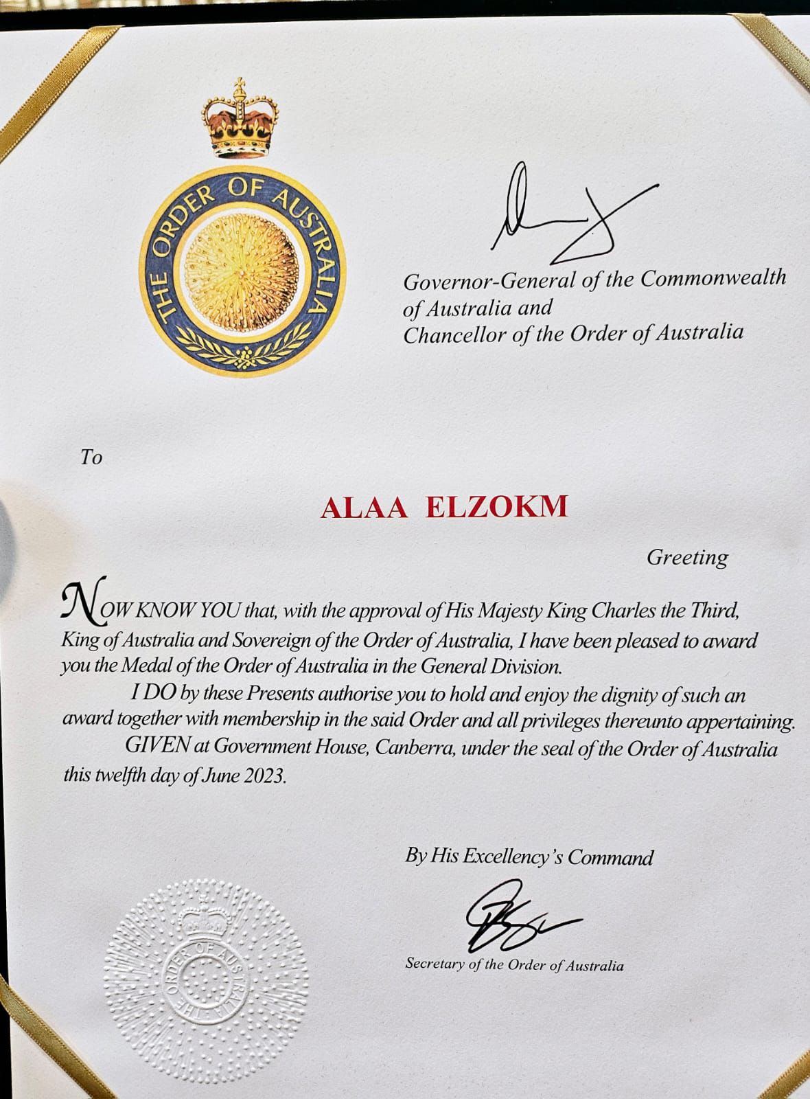 وثمَّن وزير الأوقاف حصول إمام مسجد الجمعية المصرية بمدينة ملبورن بأستراليا على وسام دولة استراليا الممنوح من الحاكم العام، ممثلًا لملك بريطانيا تشارلز الثالث ليكون أول إمام مصري يحصل على هذا الوسام العريق.