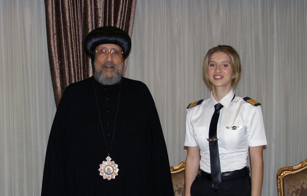 الأنبا إرميا رئيس المركز الثقافي القبطي الأرثوذكسي يستقبل ميرولا ماجد أصغر كابتن طيار في مصر