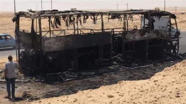 كان يُقل مرنمي كنيسة مار بولس.. اللقطات الأولى لـ تفحم أتوبيس الشرقية