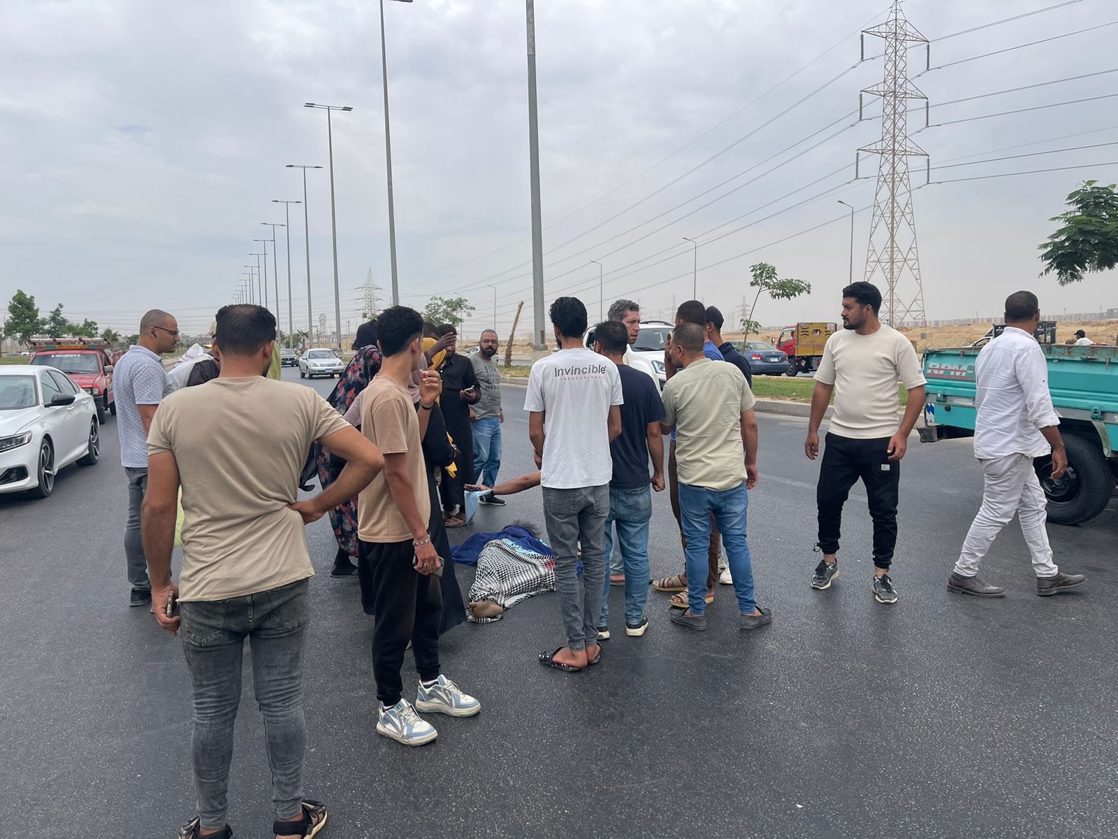 عدت قدامه فجأة.. موتوسيكل يصدم سيدة أعلى طريق الواحات بأكتوبر |صور