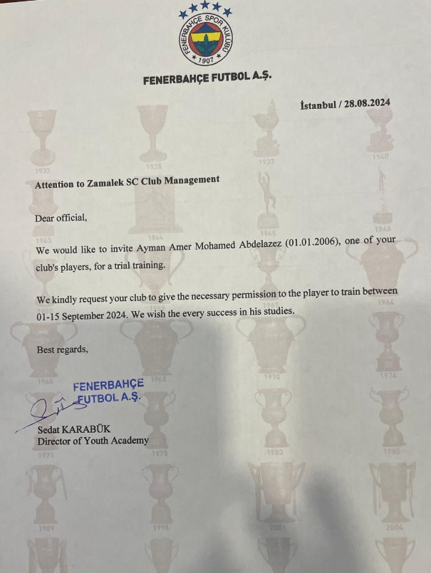 أرسل نادي فناربخشة التركي خطابا رسميا إلى نادي الزمالك، لخضوع مهاجم الفريق الشاب أيمن أمير عبد العزيز لفترة معايشة في تركيا.