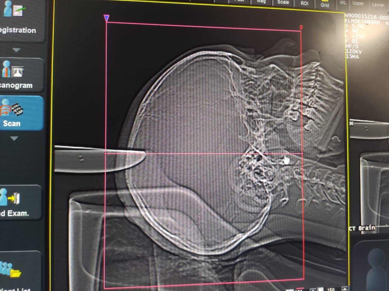 وكان تبين من إجراء الأشعة اختراق السكين لعظام الجمجمة والمخ، وتمت إزالة السكين واستكشاف الجرح والذي أظهر وجود اختراق السكين للأغشية السحائية وإحداثه نزيفا بالمخ.