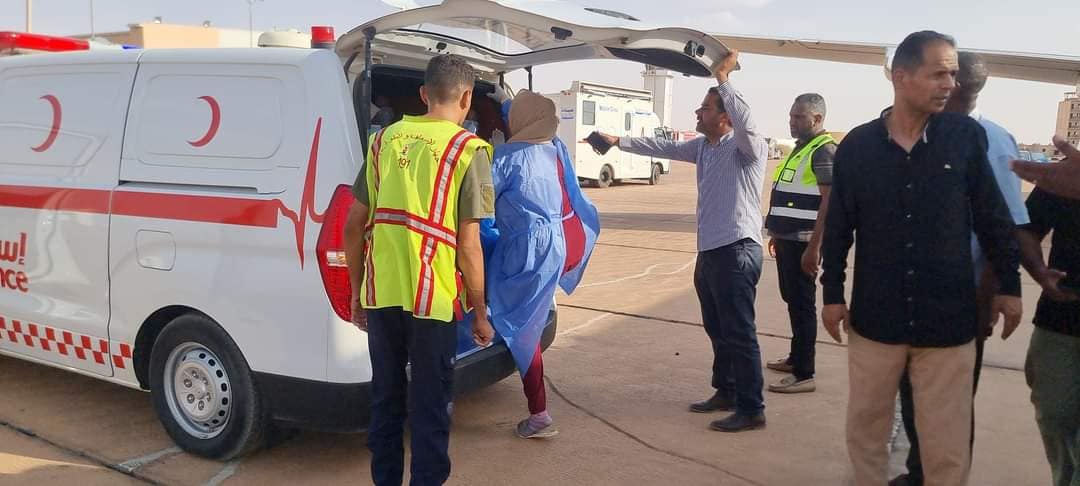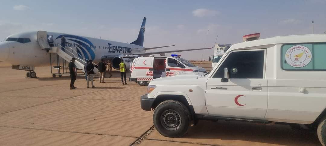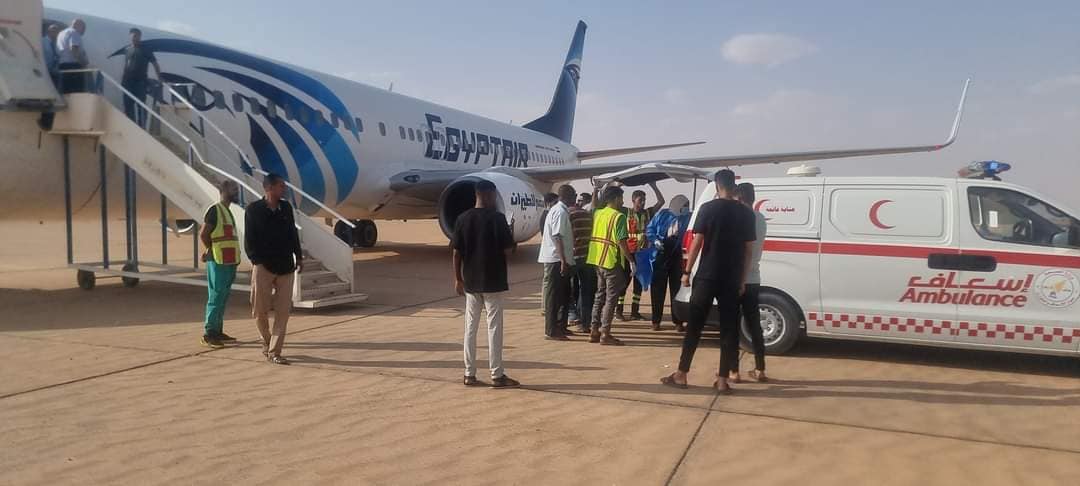 وأوضح جهاز الإسعاف الليبي في بيانه، ورد بلاغ من رئيس غرفة الطوارئ عن قرب هبوط طائرة مصرية بها حالة ولادة، وعلى الفور تم توجيه سيارة عناية فائقة وسيارتي إسعاف إضافية برفقة القابلات وسيارة عيادة متنقلة.