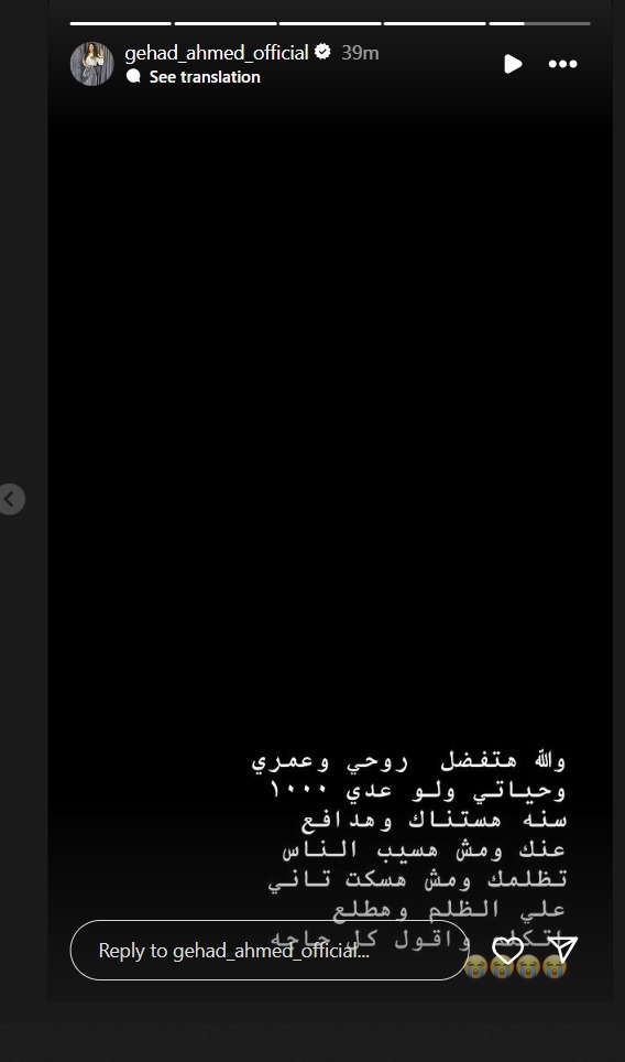 وفي منشور آخر كتبته زوجة عصام صاصا أمس قالت: والله هتفضل روحي وعمري وحياتي، ولو عدى 1000 سنة هستناك وهدافع عنك.
