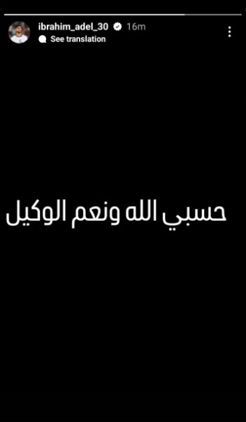 ونشر إبراهيم عادل عبر حسابه الشخصي على موقع التواصل الاجتماعي إنستجرام، رسالة غامضة حيث قال اللاعب: حسبي الله ونعم الوكيل.