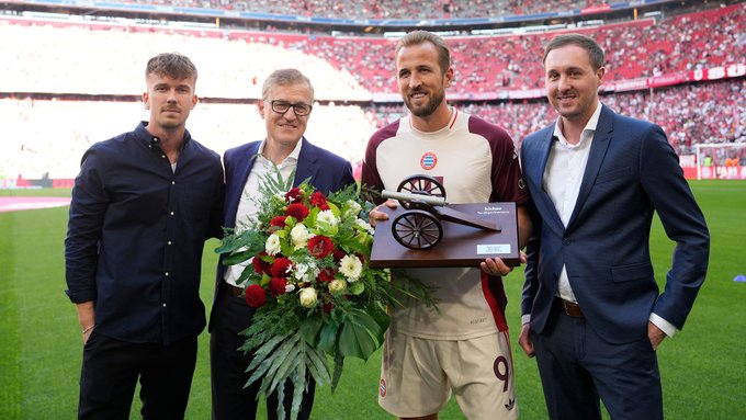 وعلى خطى جيرارد مولر وكارل هاينز رومينيجه وروبرت ليفاندوفسكي، حصل هاري كين على جائزة أفضل هداف لموسم 2023-2024 من الرئيس التنفيذي يان كريستيان دريسن، وممثلي هيئة تحرير مجلة كيكر، قبل انطلاق مباراة بايرن على أرضه ضد فرايبورج في أليانز أرينا، بعدما سجل قائد منتخب إنجلترا 36 هدفًا في موسمه الأول بالدوري الألماني ليتوج هدافًا، ويأتي ذلك بعد أيام قليلة من تكريمه بالحذاء الذهبي كأفضل هداف في أوروبا.