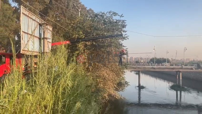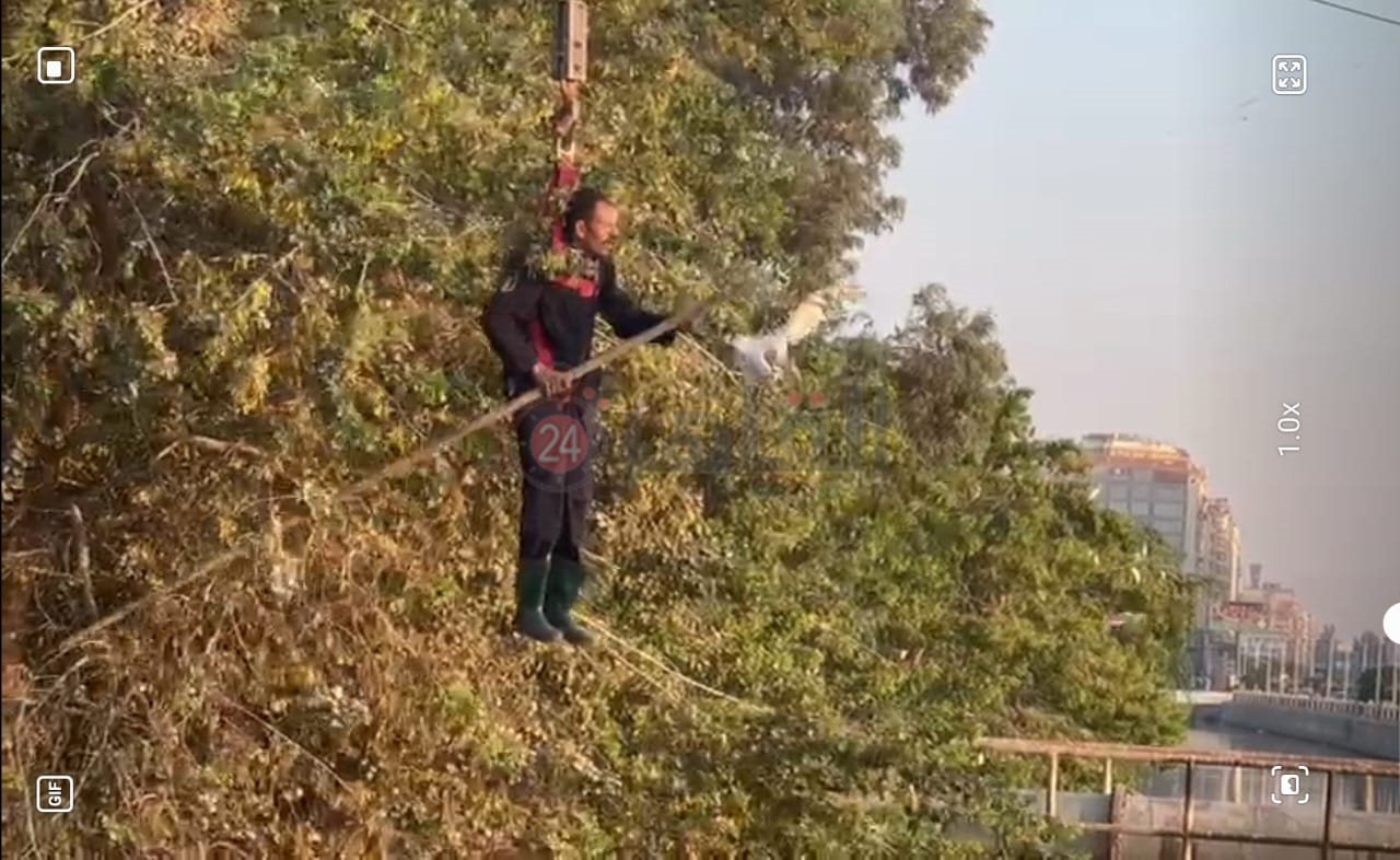 وتم انتقال قوات الحماية المدنية بالغربية والدفع بونش عملاق وربط أحد رجال الحماية المدنية ورفعه بواسطة الونش لتحرير الطائر العالق من أسلاك الإنارة بمنطقة كوبري كلية هندسة طنطا.
