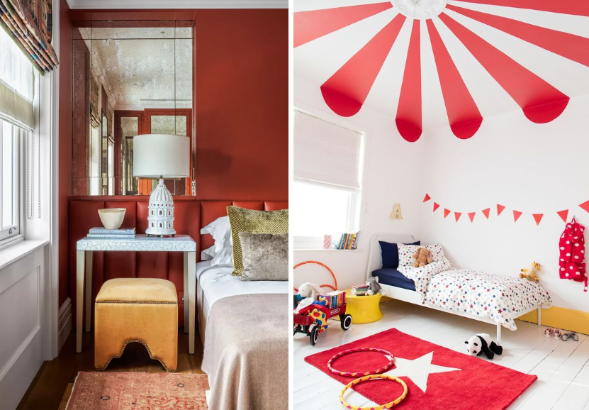 وكذلك هناك اللون الأحمر، وهو يعد ضمن الديكورات الحديثة، خاصة وأن هناك الكثير من البنات لا تفضل هذا اللوان في غرف النوم، ولكن هو ضمن الألوان التي تعطي بهجة وسعادة ولمسة جمالية رائعة عند تصميم غرف النوم، خاصة إذا كان لون طلاء الغرفة أو الديكورات.