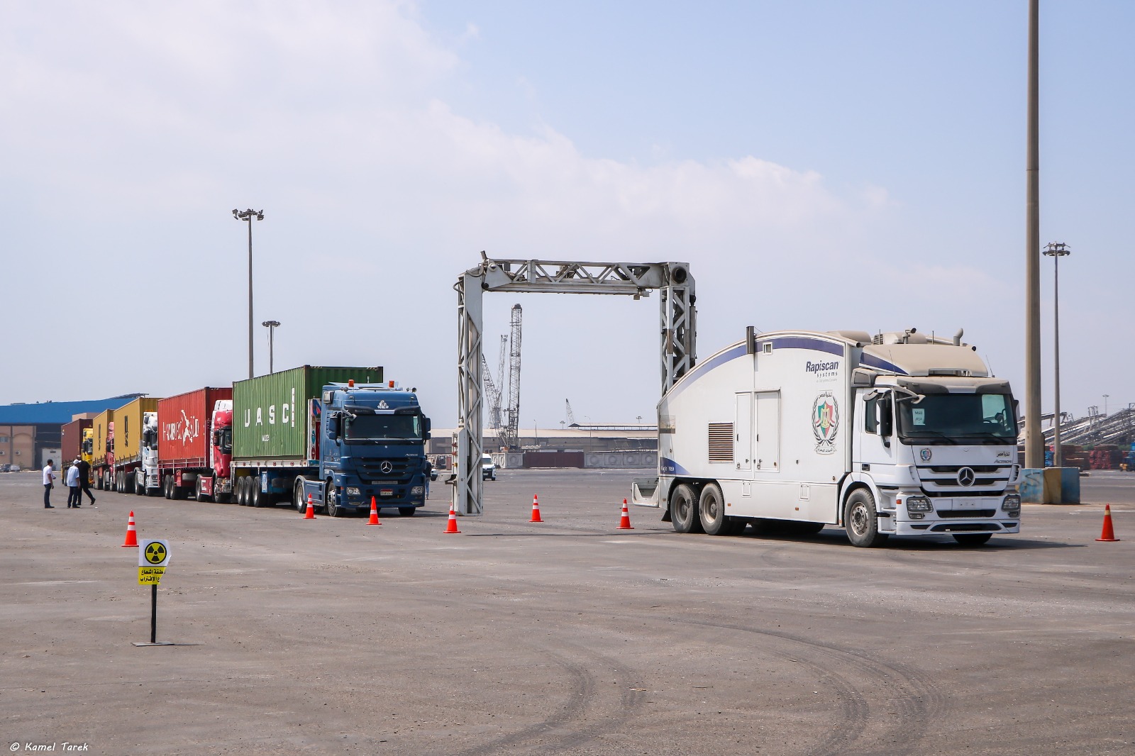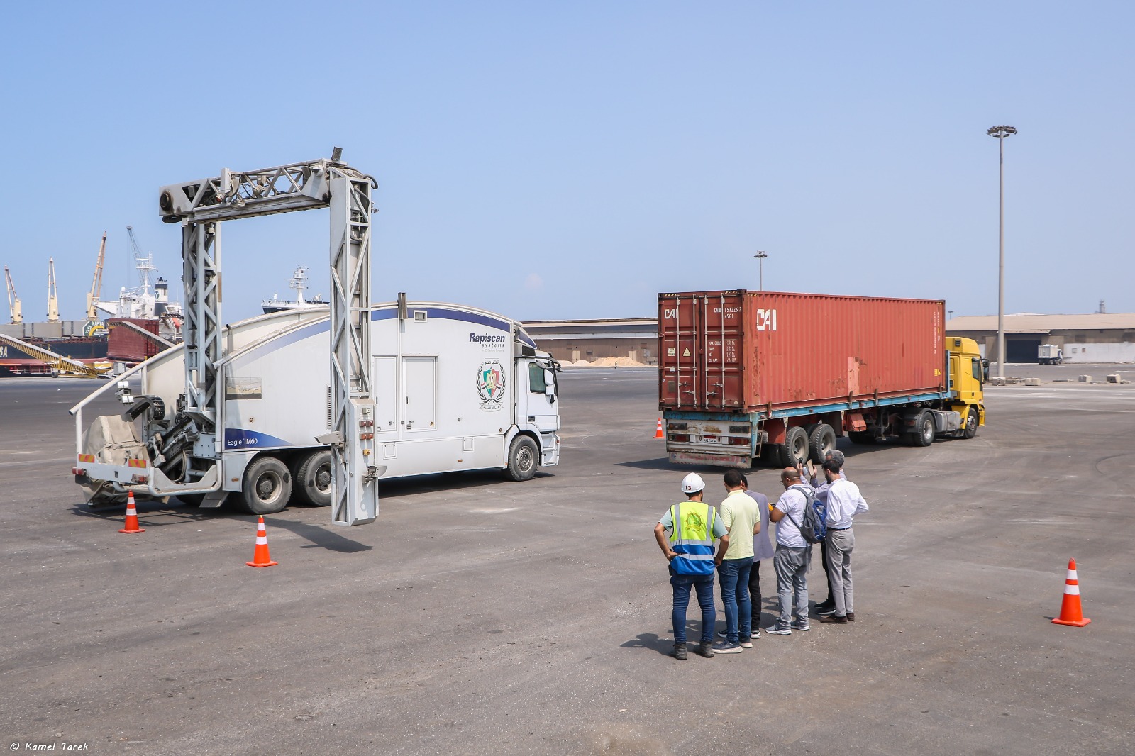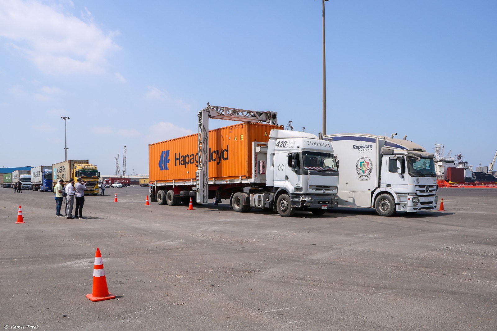 أشرف اللواء بحري أ.ح طارق عدلي عبد الله رئيس مجلس إدارة هيئة ميناء دمياط على تجارب افتراضية لتيسير إجراءات حركة الشاحنات الخاصة بالخط الملاحي والتي تضمنت تجربة للكشف على محتويات الشاحنات الناقلة البضائع بواسطة أحد أحدث الأجهزة المتحركة ( M-60 ) للكشف بتقنية ( X RAY ) والمخصص للعمل بميناء دمياط والذي يتمتع بقدرته على الكشف بدقة عالية، كما يتمتع بمرونة وسرعة في الحركة للكشف بسهولة ويسر داخل نطاق عمله مما يسهم في كفاءة وانتظام وسرعة العملية اللوجستية بداية من تراكي السفن على رصيف الرورو وصولا إلى خروج الشاحنات من الميناء بالتنسيق مع جميع الجهات المعنية.