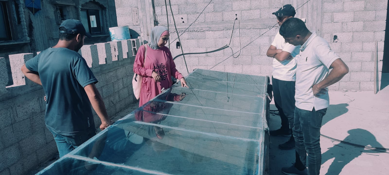 وأضافت المهندسة الفلسطينية إيناس الغول: ويوجد بالجهاز أنبوب يمر بمراحل تنقية من خلال الفحم النشط، وينزل منه المياه العذبة، كما تم تنفيذ الجهاز لمركز إيواء به 5000 نازح واستفادوا منه، وتم اختباره ووصلت نسبة الملوحة لصفر ويعالج نقص المياه وتلوثها وغلاء أسعارها وعدم توافرها في المناطق البعيدة.
