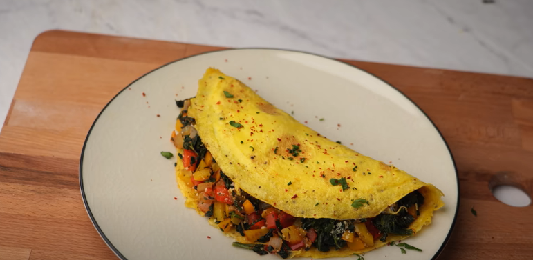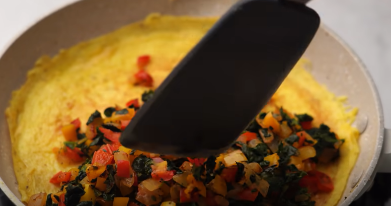 - ضعي حشوة الخضار على جانب البيض الأومليت وأغلقي على الحشوة بالجانب الآخر.