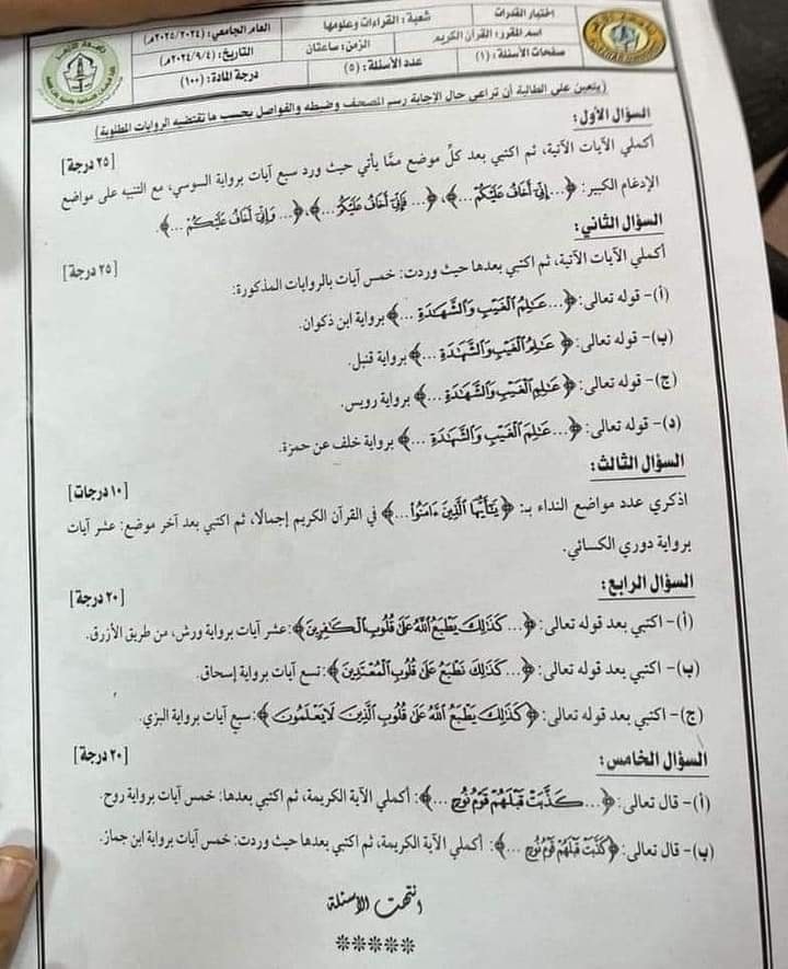 وقال الدكتور علاء الغريزين المدرس بجامعة الأزهر، عبر حسابه على فيس بوك: رأي شخصي، بصراحة أنا شايف إن دي فذلكة في وضع الامتحان وليس تقييم مستوى، دا امتحان قبول للطالبات المتقدمات للالتحاق بشعبة القراءات وعلومها، مضيفا: الامتحان ده ممكن خريج الكلية نفسها يتعثر فيه، فما بالك بطالبة مبتدئة، ولو الطالبات بهذا القدر من الكفاءة وبهذه الدقة يبقى مش محتاجين الدراسة في الكلية أصلا.