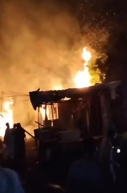 شب حريق هائل بجوار كوبري كيمان المطاعنة بإسنا جنوب محافظة الأقصر مما حول الليل المظلم لنهار لشدة تصاعد ألسنة اللهب لعنان السماء.