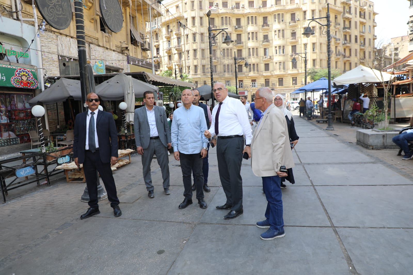 لرفع الإشغالات بالشارع والزام المقاهي بالمساحات المخصصة.. جولة مفاجئة لمحافظ القاهرة بـ وسط البلد