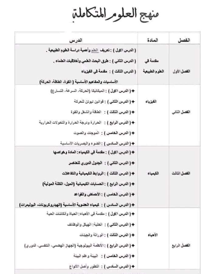 منهج العلوم المتكاملة لـ طلاب الأول الثانوي