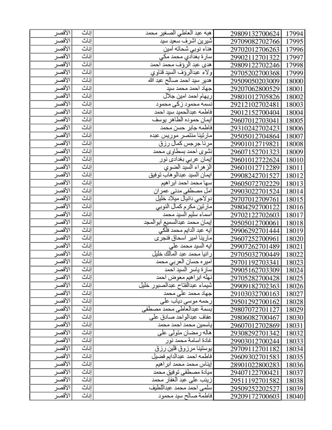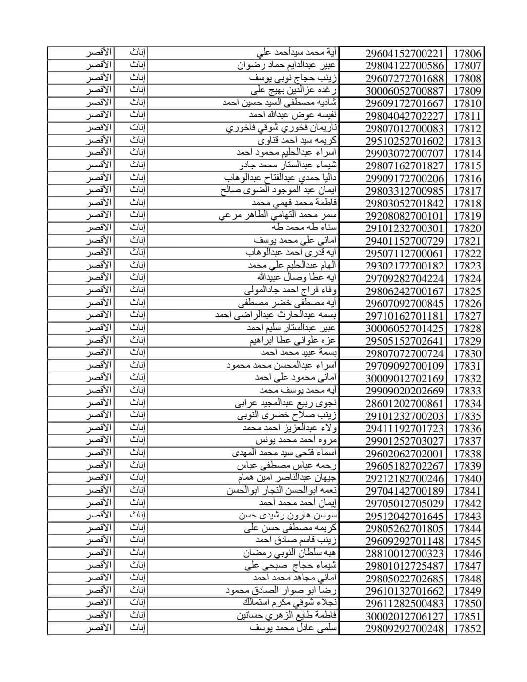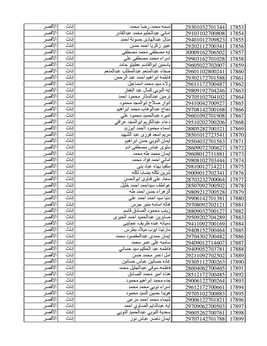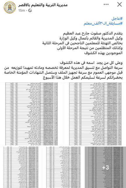 أعلنت مديرية التربية والتعليم بمحافظة الأقصر عبر صفحتها على موقع التواصل الاجتماعي فيس بوك كشوف أسماء المقبولين بمسابقة الـ 30 ألف معلم بالأقصر، والتي جاءت في 7 كشوف.