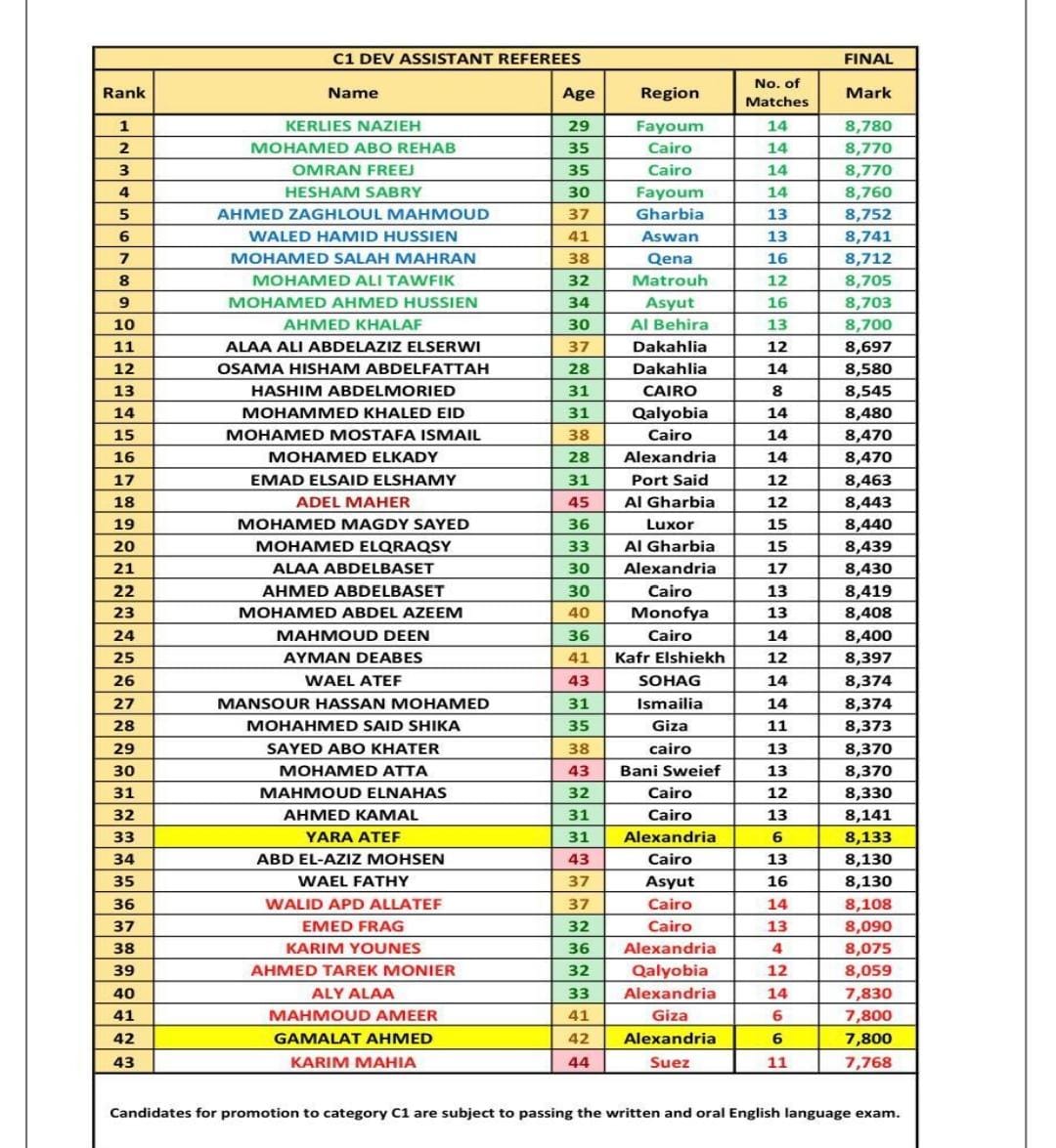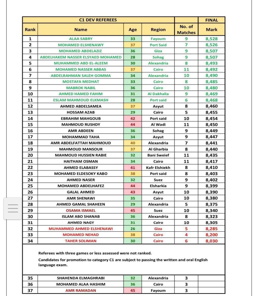 وتم إعداد هذا التصنيف بدقة وعناية بالغة، وذلك تماشيًا مع اللوائح المنظمة لحكام المباريات في اتحادات أعضاء الفيفا، ولائحة تحكيم اتحاد الكرة المصري.