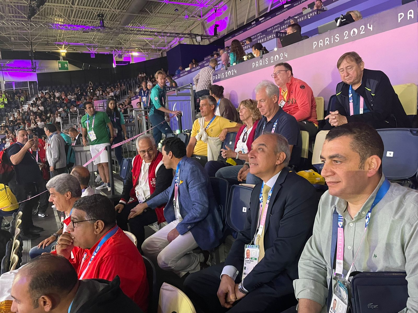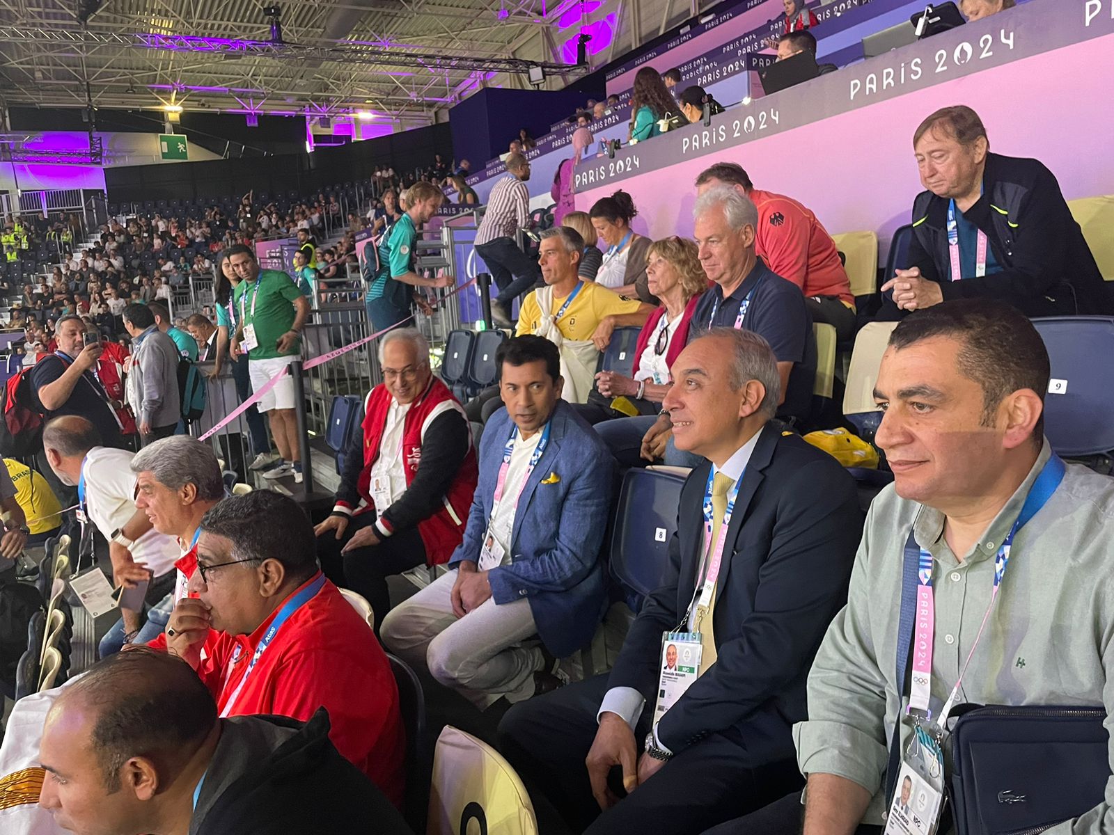وزير الرياضة يؤازر منتخب مصر للكرة الطائرة جلوس في مباراة البرونزية