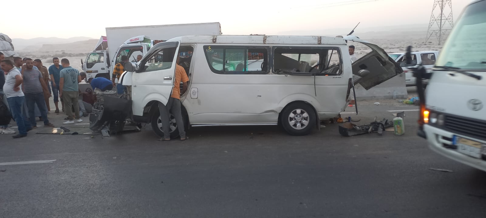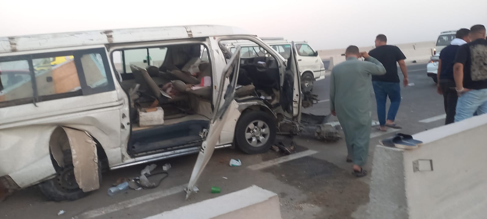 مصرع شخص وإصابة 19 آخرين في انقلاب ميكروباص أعلى الطريق الصحراوي بالصف