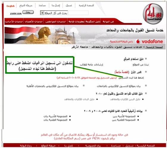 - أسفل خدمة تسجيل الرغبات اضغط على "اضغط هنا لتسجيل رغباتك".