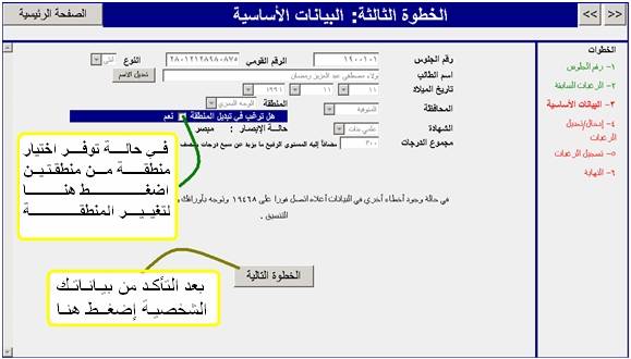 - ستنتقل إلى صفحة تعرض جميع بياناتك اضغط الخطوة التالية.