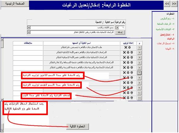 - حدد الرغبات حسب الأولوية ثم اضغط حفظ الاستمارة.