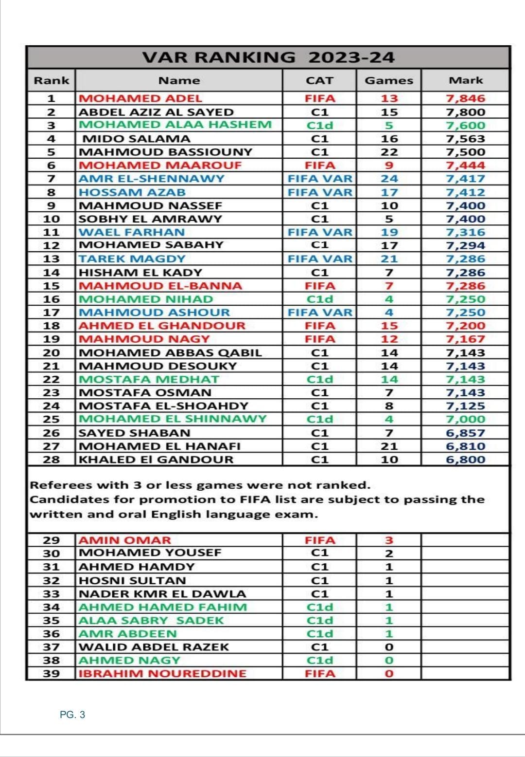 وتم إعداد هذا التصنيف بدقة وعناية بالغة، وذلك تماشيًا مع اللوائح المنظمة لحكام المباريات في اتحادات أعضاء الفيفا، ولائحة تحكيم اتحاد الكرة المصري.