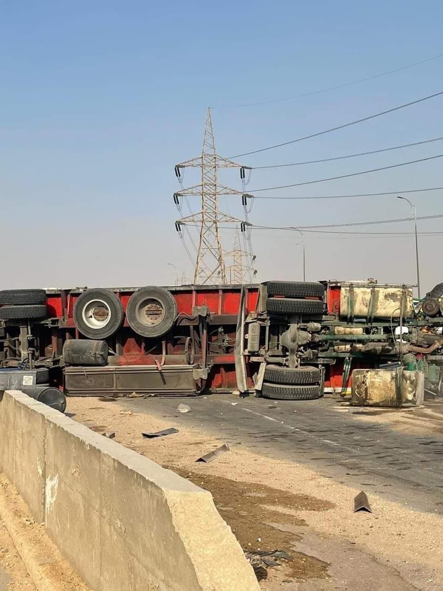 إصابات في حادث انقلاب مقطورة بالطريق الإقليمي باتجاه 6 أكتوبر| صور