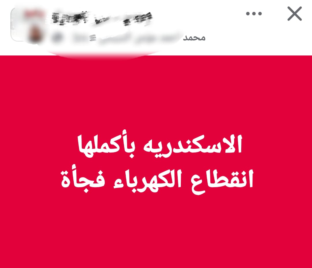 وانتشرت عبر صفحات مواقع التواصل الاجتماعي، منشورات من عدد من سكان الإسكندرية تفيد بانقطاع الكهرباء في مناطق مختلفة منها المندرة وسيدي بشر ومحرم بك والحضرة وسموحة والعجمي والورديان وبحري، متسائلين عن سبب الانقطاع المفاجئ في وقت واحد رغم استقرار حالة الكهرباء.