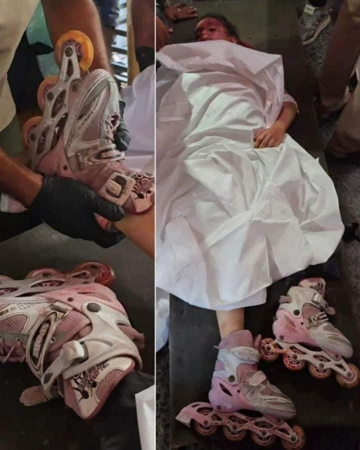يوم الثلاثاء الماضي، وفي تمام الساعة الخامسة والنصف مساءً، قبل استشهاد الصغيرة بدقائق معدودة، سمحت والدة تالا أبو عجوة، صاحبة العشر سنوات، بخروج طفلتها للعب لعبتها المفضلة السكيت رفقة صديقاتها، بعد محاولات عديدة من الإقناع، وفقًا لحديث الأب حسام صلاح أبو عجوة، مع القاهرة 24، مردفًا: كان بدها تنزل وأنا طول اليوم ماخلتهاش تطلع من البيت من خوفنا عليها، بسبب الحرب، وأمها ماكنتش حابة نزولها، وقبل استشهادها بحوالي 10 دقائق، أخذت الصغيرة تزن على أمها وتترجى فيها حتى تنزل تلعب بـ السكيت مع البنات وأمها لم توافق، حتى اتصلت جارتنا على أمها حكت لها خليها تلعب وكل البنات تحت حتى تغير جو، خجلت الأم ووافقت.. لبست السكيت ونزلت على الدرج، لم يمر دقائق معدودة إلا وسمعنا صوت انفجار قوي.