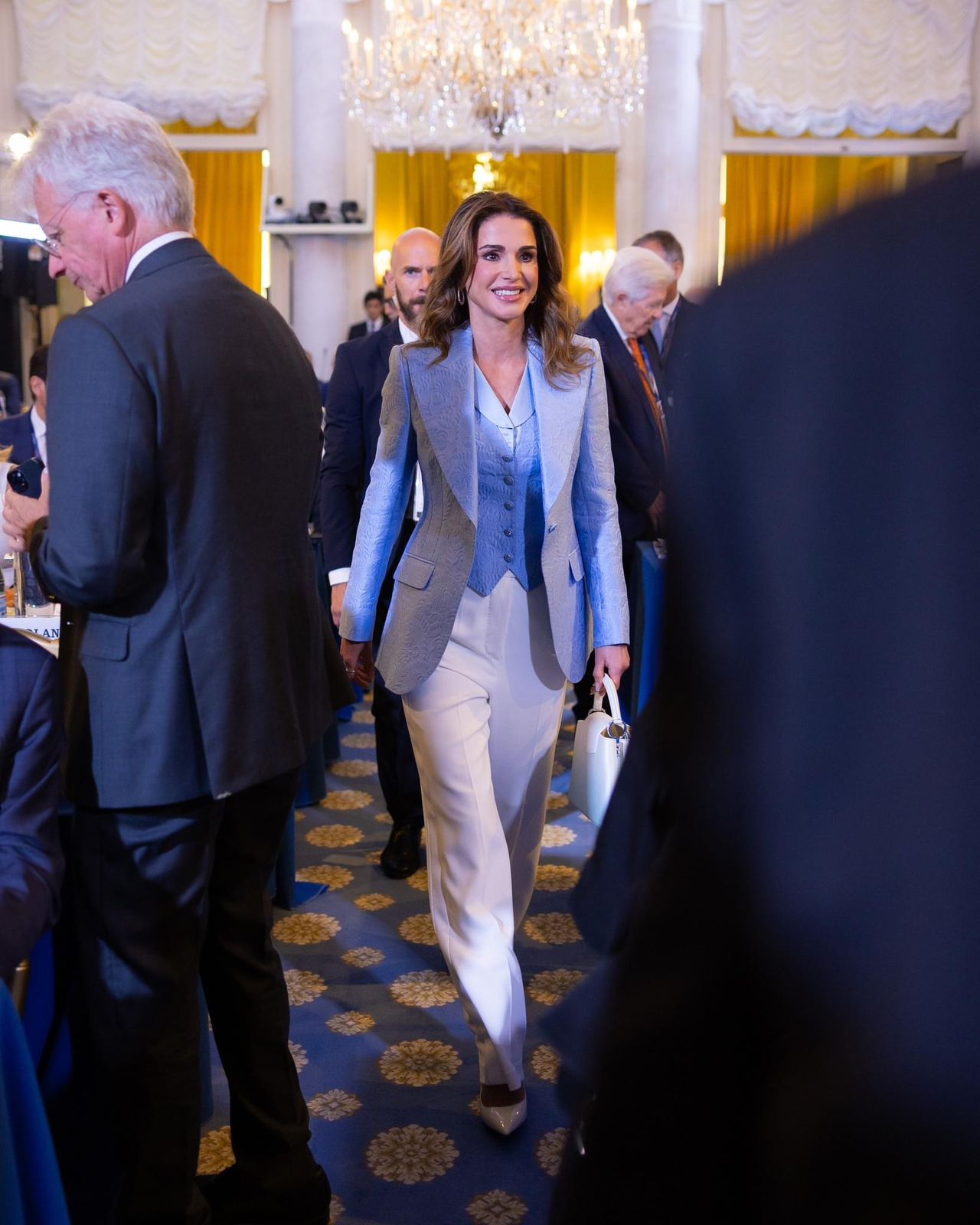 إلى جانب كلمتها المؤثرة، لفتت الملكة رانيا الأنظار بإطلالتها الأنيقة خلال المنتدى، حيث ارتدت زيًا يعكس ذوقها الرفيع ويعزز من حضورها الدولي، حيث جمعت إطلالتها بين البساطة والرقي، مما أضاف إلى ثقل رسالتها الإنسانية ودعمها للقضايا العادلة، خصوصا فيما يتعلق بغزة والعدالة الدولية.